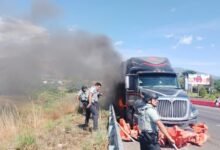 Controlan incendio en tráiler por falla de frenos en autopista Siglo XXI