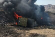 Tráiler se incendia tras volcar en autopista Siglo XXI