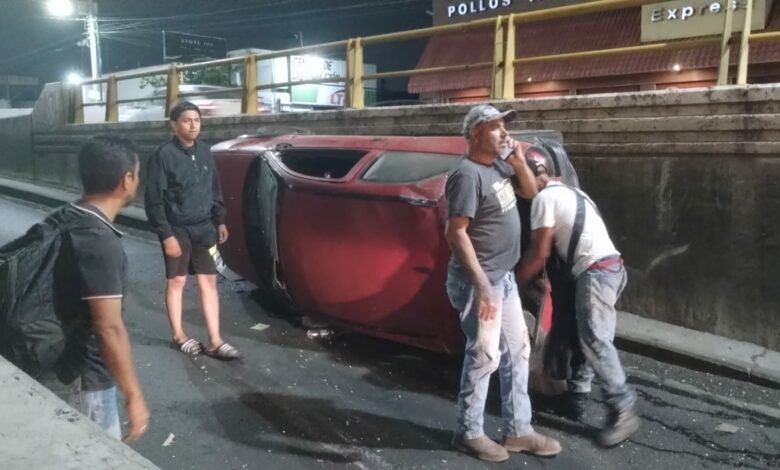 Auto termina volcado en libramiento norte: ¿Exceso de velocidad?