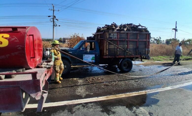 Apatzingán, Michoacán – 19 de diciembre de 2025. Una camioneta de carga que transportaba madera estuvo a punto de convertirse en una bola de fuego sobre la carretera Cuatro Caminos-Apatzingán. El conductor, al percibir una densa columna de humo que salía de su carga, detuvo el vehículo inmediatamente y dio aviso a las autoridades. Minutos después, elementos de Bomberos y Protección Civil Municipal llegaron al lugar justo cuando las primeras llamas comenzaban a aparecer.