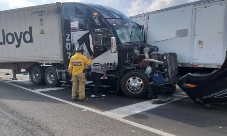 Morelia, Mich.- Lunes 08 de diciembre de 2025. Un fuerte choque entre un tráiler y un camión de carga paralizó el tránsito en el kilómetro 19 de la carretera Morelia-Pátzcuaro, específicamente a la altura de El Reparo. El impacto, ocurrido durante la tarde de este lunes, generó un conflicto vial considerable en la zona, aunque milagrosamente solo resultó en daños materiales. Autoridades policiales confirmaron que los tripulantes de ambos vehículos pesados salieron ilesos del percance, tras la intervención de Bomberos Estatales que acudieron al llamado realizado al 911.