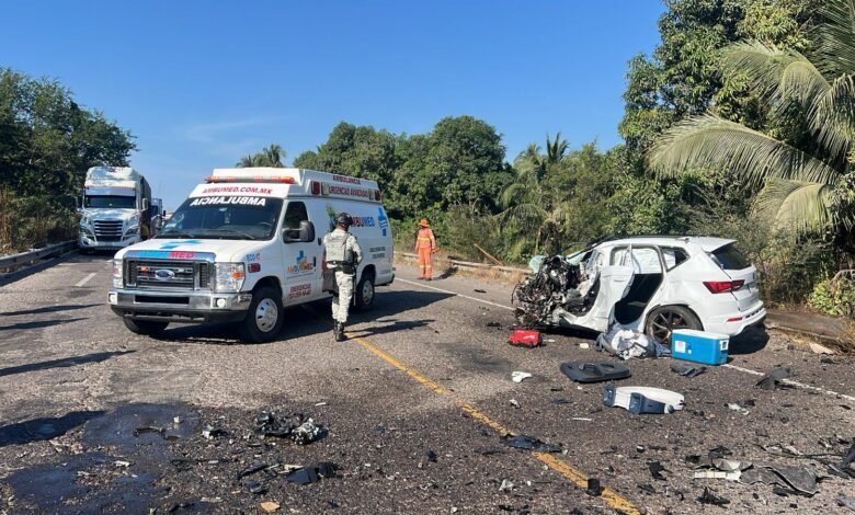 La Unión, Guerrero.- 29 de diciembre de 2025. Un hombre de aproximadamente 45 años perdió la vida de manera trágica este lunes, tras quedar prensado al interior de su vehículo particular. El fatal accidente ocurrió cuando su automóvil Cupra blanco chocó de frente contra un camión nodriza Kenworth que transportaba autos nuevos, sobre la autopista Siglo XXI, a la altura del kilómetro 297, en los límites entre Guerrero y Michoacán. El impacto fue de tal magnitud que el frente del auto quedó completamente destrozado, mientras que el pesado camión de carga terminó atravesado, bloqueando ambos carriles de la vialidad de cuota.