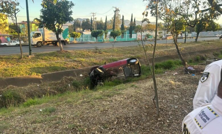 Choque y volcadura en Periférico de Morelia deja un lesionado