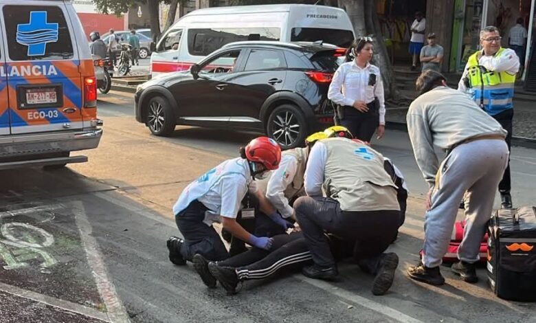 Morelia, Michoacán. 8 de abril de 2026. Una mujer resultó lesionada tras sufrir un accidente en motocicleta, provocado por un derrame de aceite automotriz en la avenida Madero Poniente. El incidente ocurrió entre las calles Cuautla y Lerdo de Tejada, en el Centro Histórico de la ciudad, durante la tarde de este miércoles. Varios testigos alertaron a los servicios de emergencia solicitando una ambulancia para la afectada.
