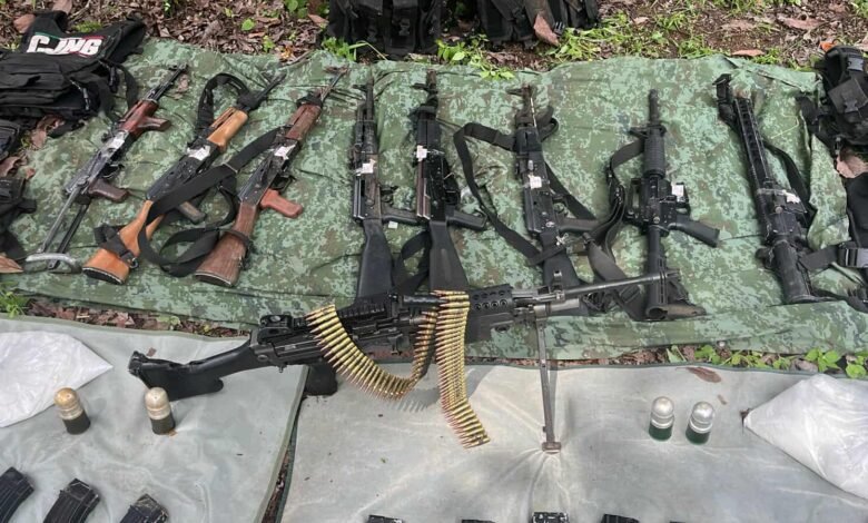 Uruapan, Mich.- 3 de octubre de 2025. En un contundente operativo militar ejecutado en la comunidad de Toreo El Alto, elementos del Ejército Mexicano lograron desmantelar un importante arsenal perteneciente al Cártel Jalisco Nueva Generación. Aunque no se reportaron detenciones durante la intervención, las fuerzas armadas aseguraron un impresionante botín de armamento que incluye desde fusiles de asalto hasta granadas de fragmentación, evidenciando la capacidad de fuego que mantiene este grupo criminal en la región.