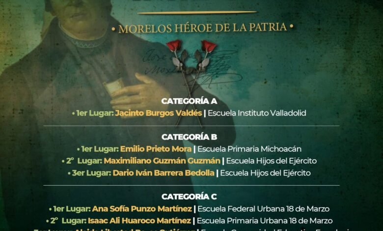 ¡Celebramos el talento de nuestras niñas y niños! La Secretaría de Cultura de Michoacán presenta a los ganadores del concurso de poesía infantil ‘Morelos, Héroe de la Patria’, realizado en el marco del 60 aniversario del Museo Casa Natal de Morelos.