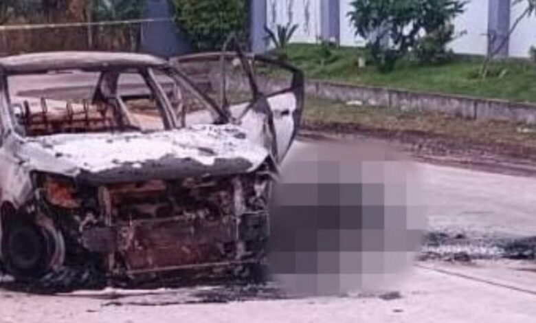 Hallan cuerpo calcinado junto a auto incendiado en Cuitzeo