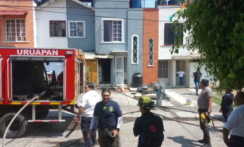 Uruapan, Mich.- 29 de abril de 2026. La tarde de este miércoles se registró un incendio en una vivienda de la colonia San José de la Mina, al norte de la ciudad de Uruapan. El siniestro no dejó personas lesionadas, pero sí cuantiosos daños materiales.
