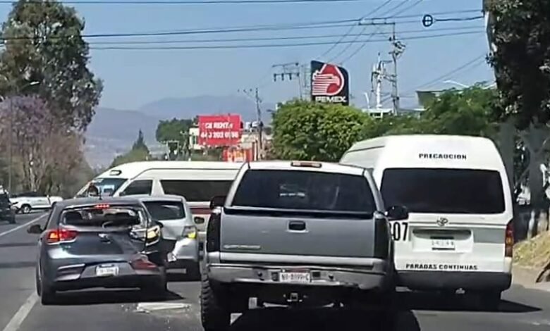 Morelia, Michoacán, 23 de febrero de 2026. Una camioneta que circulaba aparentemente con una llanta ponchada provocó un accidente múltiple en el Libramiento Oriente de Morelia. El vehículo, al llegar a la altura de la colonia San Rafael, chocó por alcance contra un automóvil, lo que a su vez provocó que este impactara contra otra unidad. Además, la camioneta perdió el control y colisionó levemente con la parte trasera de una combi de la Ruta Gris.