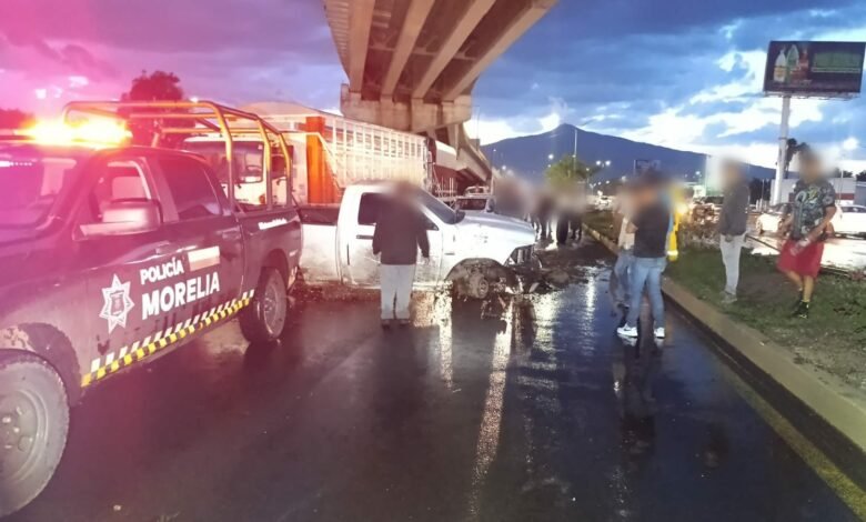 Morelia, Mich.- Viernes 19 de septiembre de 2025. Un violento choque se registró esta tarde en el Libramiento Norte de Morelia, cuando una camioneta se salió del camino y embistió contra un poste del alumbrado público en el Distribuidor Vial Salida a Salamanca. El impacto fue de tal magnitud que el poste quedó completamente derribado, generando caos vial en esta importante arteria de la ciudad.