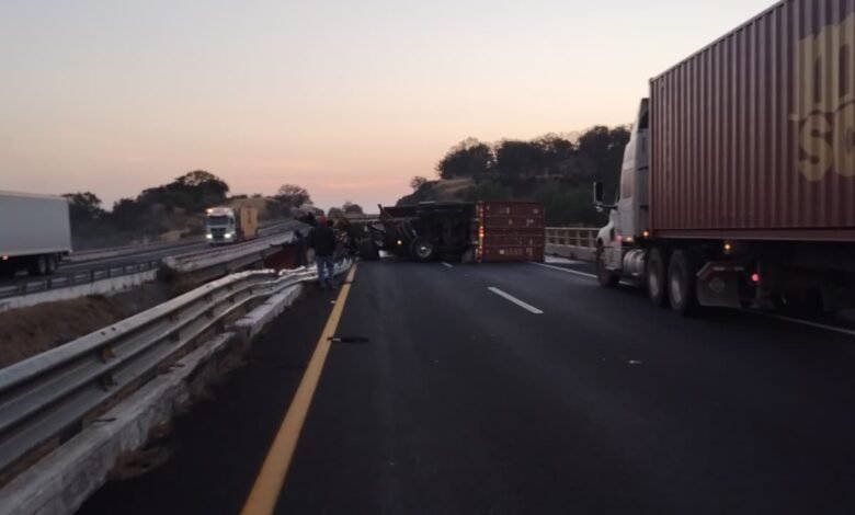 Muere conductor tras volcadura de camión en autopista de Michoacán