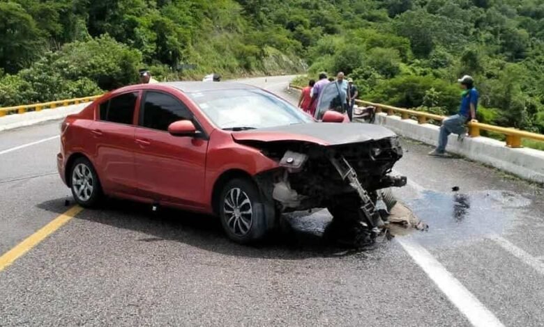 La Unión, Guerrero.- 06 de octubre de 2025.- Un violento accidente se registró en la autopista Siglo XXI cuando un automóvil Mazda 3 de color rojo con placas PTB-685-C perdió el control y se impactó contra la guarnición de un puente en el tramo Las Cañas – Feliciano. El siniestro ocurrió alrededor del kilómetro 266+000 durante la tarde de este lunes, generando alerta entre otros conductores que presenciaron el momento crítico.