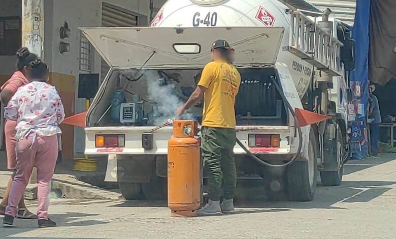 Pipa de gas recargaba cilindros en mercado de Huetamo sin seguridad