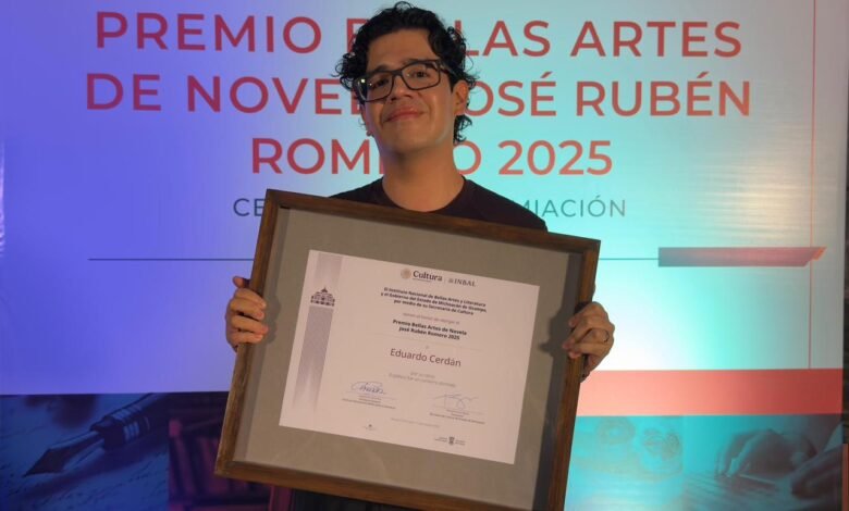 ¡Celebremos juntos el talento literario! El escritor veracruzano Eduardo Cerdán recibió el prestigioso Premio Bellas Artes de Novela ‘José Rubén Romero’ 2025 por su impactante obra ‘El pánico fue un cachorro dormido’.