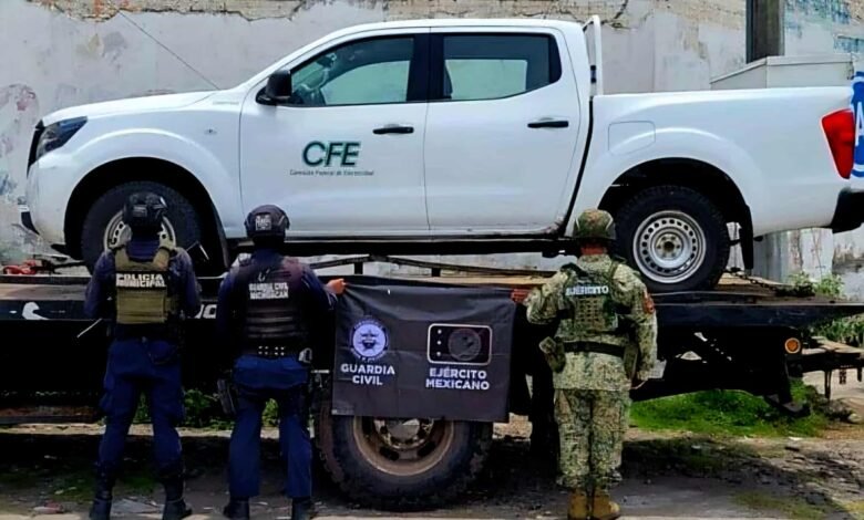 Apatzingán, Mich.- 30 de agosto de 2025.- En un operativo que movilizó a la Guardia Civil, el Ejército Mexicano y la Policía Municipal, fue recuperada una camioneta oficial de la Comisión Federal de Electricidad que había sido robada horas antes en la localidad de Los Hornos. La unidad, una Nissan NP300 blanca con placas PDN-5639, fue localizada abandonada en un camino de terracería tras una búsqueda iniciada gracias a una alerta del Sistema de Información sobre Robo de Vehículos.