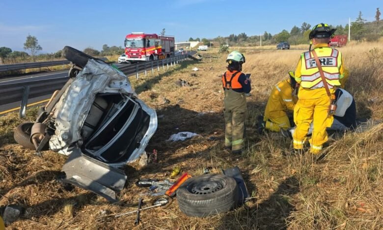 Taxi de Walmart La Huerta vuelca en Morelia-Pátzcuaro; 2 heridos