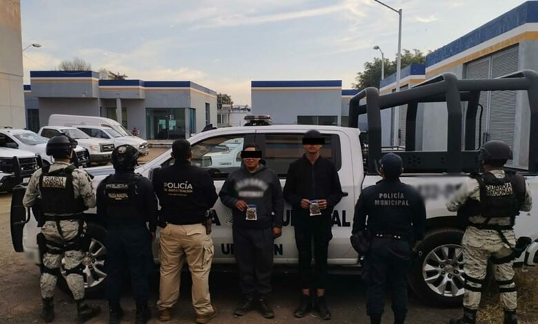Tingambato, Mich.- 04 de diciembre de 2025. Un operativo conjunto entre la Guardia Civil, Fiscalía, SSPC, Ejército y Policía Municipal resultó en la detención de dos presuntos extorsionadores sobre la carretera libre Uruapan-Pátzcuaro. Los sujetos, identificados como José Carlos L. y Adolfo Ángel V., viajaban en un taxi de la organización “Especial” de Uruapan cuando fueron interceptados cerca de Tingambato. La captura se realizó después de que una de sus víctimas los señalara ante las autoridades, lo que activó el dispositivo de seguridad.