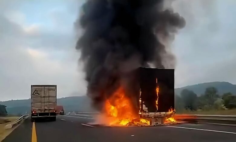 Tractocamión en llamas paraliza autopista México-Guadalajara