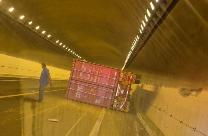Tractocamión volcado en túnel: conductor desaparece tras accidente