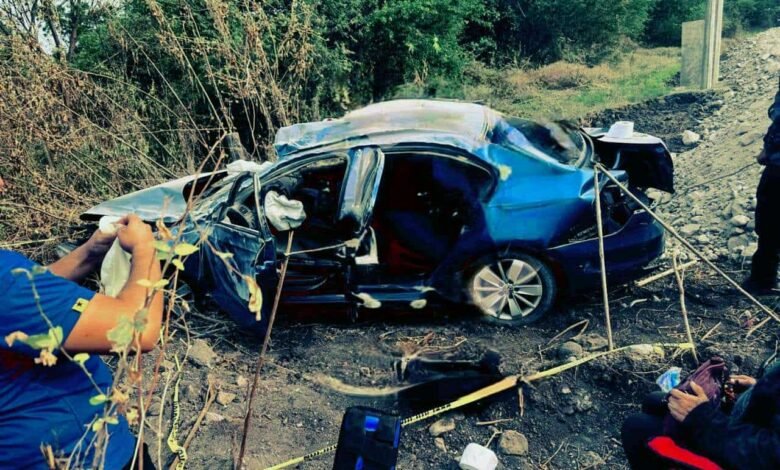 Parácuaro, Mich.- 8 de noviembre de 2025. Un aparatoso accidente automovilístico dejó como saldo a dos adultos mayores con lesiones de consideración cuando su vehículo Volkswagen de color azul volcó de manera espectacular sobre la carretera Apatzingán-Cuatro Caminos. El siniestro ocurrió a la altura del crucero de Las Yeguas, donde el automóvil perdió el control y salió de la carpeta asfáltica, terminando milagrosamente sobre sus cuatro llantas después de la violenta volcadura.