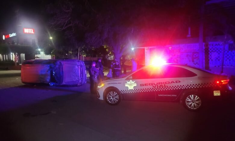 Apatzingán, Mich.- 20 de enero de 2026. En un intento por detener a los responsables de un violento robo, un hombre terminó volcando su camioneta en la colonia José María Morelos. El incidente ocurrió pasadas las 3:20 de la madrugada, cuando Felipe M. Á., de 39 años, perseguía a sujetos que minutos antes habían despojado a punta de pistola una motocicleta a sus familiares. La persecución terminó abruptamente sobre la avenida Francisco I. Madero, a la altura del hotel Cast-Innm, donde el conductor perdió el control del vehículo.